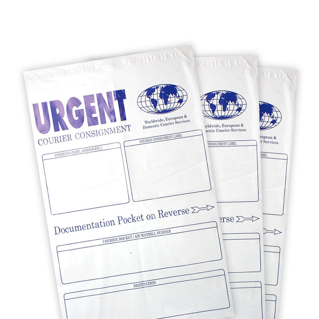 Courier Bags - 70 mu - Size 385 mm x 540 mm - Clear Document Pouch to reverse - Packed in 250's - Prices from £47.00 per box (Code - CB)
